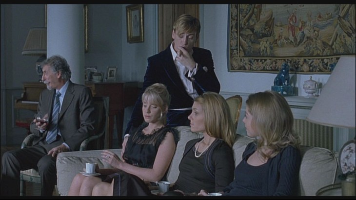 The film makes interesting use of colour and lighting. Here we see the married Paul and Gabrielle spending time with their dull, rich friends and family. Grey is the dominant colour, the lighting seems natural