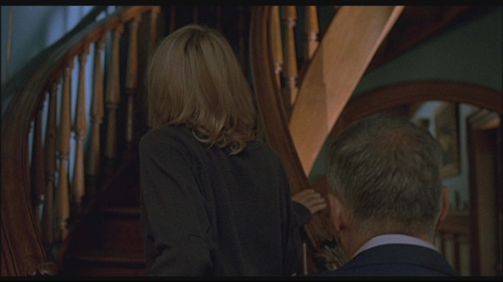 Chabrol relishes in driving home the fact that all of the moral dichotomies facing Gabrielle are ultimately illusory. If she is asked to choose between roguish stability and devoted instability, the stability will reveal itself to be illusory. If she then accepts the value of a devoted partner, she learns that the devotion is not necessarily to her but to an idea of her. An objectification of her. A desire to possess that object. Every choice Gabrielle makes is the wrong one. In fact, it is not at all clear that there ever was a right one for her except possibly to ignore the attentions of both men. The deck was stacked against her to begin with.