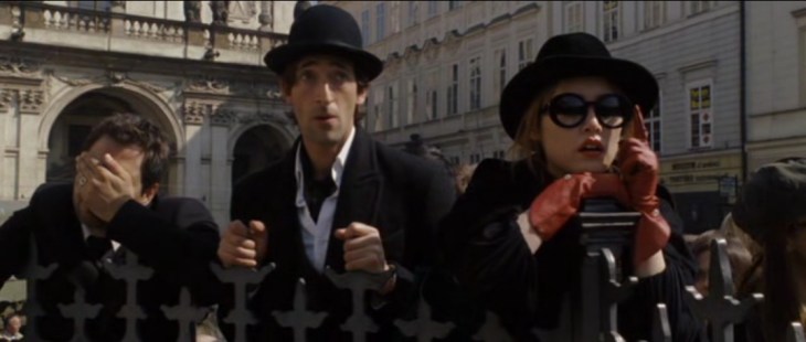 In one scene, Penelope must sneak into a castle to steal a book but a miscalculation leads to the gang accidentally blowing up half the castle.  After Johnson cuts to the reactions of the other characters, he allows the camera to pull back.  Suddenly, the gang are not colourful individuals in a landscape populated by whimsical odd-balls, they are a bunch of weirdly-dressed freaks standing in a square surrounded by worried tourists.  This radical realignment of the film’s ontological register is amazingly powerful as we are dragged from amusement at a cartoonish explosion to 9/11 conditioned anxiety as Penelope is hauled in for questioning by the Czech police.