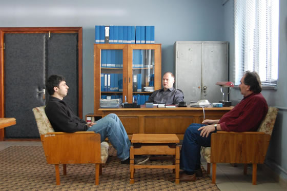 Cristi’s problems with language continue throughout the film as he and his co-workers are frequently reprimanded for using the language of criminals rather than police (“squealer” as opposed to “informant”).  He also runs foul of the spelling reforms instigated by the Romanian Academy as both his partner and his boss are up on correct form while Cristi struggles to even come to grips with the concept of there being a correct form of language that is imposed by some centralised governmental body.  Indeed, in Police, Adjective correct use of language is associated with de-humanisation and authoritarianism.  In one extraordinary scene, Cristi makes it clear to his boss that he has no intention of arresting the teenager and his boss responds by having him look up words in the dictionary.  Cristi’s partner refers to this process as ‘dialectical’ but Romania is a former Communist country and, as such, Marxist analytical techniques are not emancipatory but repressive: ‘dialectics’ is the process through which the powerful compel the powerless to conform to their wishes.  Language crushes reality.  Language makes reality.