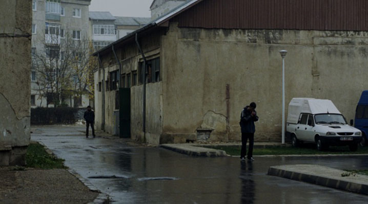 Cristi (Dragos Bucur) is a lowly Romanian cop.  Assigned by a prosecutor to investigate a tip-off that a local teenager is selling drugs, he spends his days standing in the streets watching a group of teenagers walk back and forth to school.  Occasionally, he needs to get some information from records, at which point he heads back to the office and has to convince his co-workers to go and get the information for him.  At the end of the day, Cristi goes home and talks to his partner.  Sometimes he drinks too much and squabbles with her.