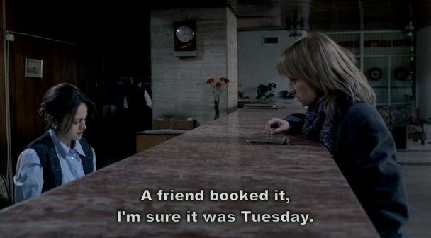 When she turns up at the hotel where Gabi booked a room, she is informed by a magnificently unpleasant and disinterested clerk that nobody bothered to write down the booking. To an audience that never lived under Communism, this sequence is farcical, not only does the hotel clerk seem completely incompetent but she also seems to be taking a real joy in denying Otilia (and, by extension the hotel) the opportunity to engage in a business transaction. This scene in which the values of a self-perpetuating Communist regime clash with the ‘right-functioning’ capitalistic model foreshadows the relationship between customer and client that will come to dominate the film.