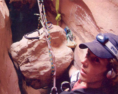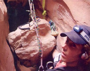 Suddenly, as he makes his way down Blue John Canyon, Ralston slips and winds up at the bottom of a gorge with his arm pinned to the wall by a boulder. Initially, he reacts with near panic, trying desperately to lift up the rock and screaming for help despite knowing full well that there is no one for miles around. But then his training as an engineer and a survival guide begins to kick in and Ralston starts to plan. He takes out his gear, he prepares a sling to sleep in and he starts to dig at the rock near his arm in an attempt to get out. However, as the days pass and it starts to become clear that a) the rock cannot be lifted without a winch and b) the boulder is actually resting between his arm and the wall meaning that by picking at the with his penknife, Ralston is actually allowing more and more of the boulder to rest on his arm. So he has been working hard at getting himself more firmly pinned.