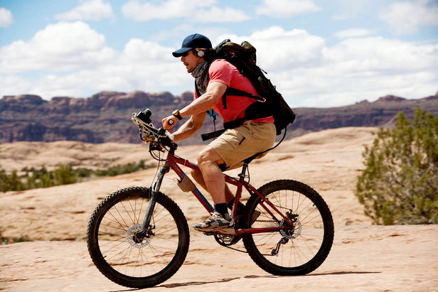 127 Hours begins with Ralston (James Franco) rushing to get ready. His phone rings, he does not answer. It is his mother. He is indifferent to her hopes of talking to him. Ralston pulls his gear together and climbs into his SUV and takes to the highway, an ear-shattering soundtrack full of energy and colour drowns out the city as he speeds through it and into the wilderness of the night. As he beds down in the back of his truck he sighs contentedly. He is free. Ralston does not so much greet the day as attack it, catapulting himself out of the back of his truck on a mountain bike and tearing off across the rocky wilderness of the Utah desert, bragging to his video camera that he plans to knock 45 minutes off the suggested travel time to Blue John Canyon. With the wind in his hair and his headphones on, Ralston seems perfectly at peace. A self-contained Buddha of fulfilment.