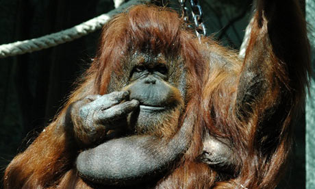 Predictably, it is the senior keeper Gerard who comes closest to the truth. Evidently, while Nenette has been kept with her son because after producing four children the keepers decided not to breed from her anymore. However, animals seem not to share the same taboos surrounding incest as humans and so Nenette was placed on the pill. Djan responds to this by asking whether, given Nenette’s age, she might not be menopausal and Gerard responds that they do not know. Orang-utans do not menstruate and they give no sign of being in season. It is simply impossible to know whether Nenette still wants sex. It is impossible to know because she is an Orang-utan. Indeed, if we can never be certain what it is that other humans are feeling, then how can we possibly hope to understand the psychology of an ape that hardly ever moves and never makes a sound? In order to guess at Nenette’s mental state we have to project ourselves not only through our skulls but also the thick pane of glass that forever separates us from other species.