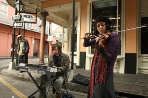 Annie and Sonny are a pair of street musicians.  Annie (Micarelli) is a beautiful and classically trained violinist who arrived in New Orleans, fell in love with the music and set about trying to make a name for herself whilst learning the particular style of New Orleans rhythm and blues.  Her guide in this quest is Sonny (Michiel Huisman), a former drug-addict from Holland who has seemingly internalised the somewhat scabrous values of the New Orleans music scene.  Annie and Sonny play beautifully together but it is quite clear from the start of the series that Annie is the real star in this partnership while Sonny’s expertise and passion never quite make up for a lack of talent that keeps him from staking out a place at the top table.  In one powerful scene, Sonny is invited to play in a band with a well-respected musician but after failing to distinguish himself sufficiently, Sonny is replaced by another pianist reducing Sonny to pointing out that one of the keys is a bit sticky.  Sonny’s lack of progress in his chosen field forces him not only back into drugs but also into an increasing sense of paranoia over Annie’s blossoming career. When Annie starts to play different styles with different people in different places, Sonny accuses her of selling out and of not being true to the spirit of the music in so far as their partnership really works. By framing his accusations in terms of Annie failing to ‘learn the rules’ and ‘obey the music’, Sonny is showing us not only the arbitrary nature of the social conventions that underpin communities but also how monstrously unfair they can be to the people who want membership of a community but not at any price.