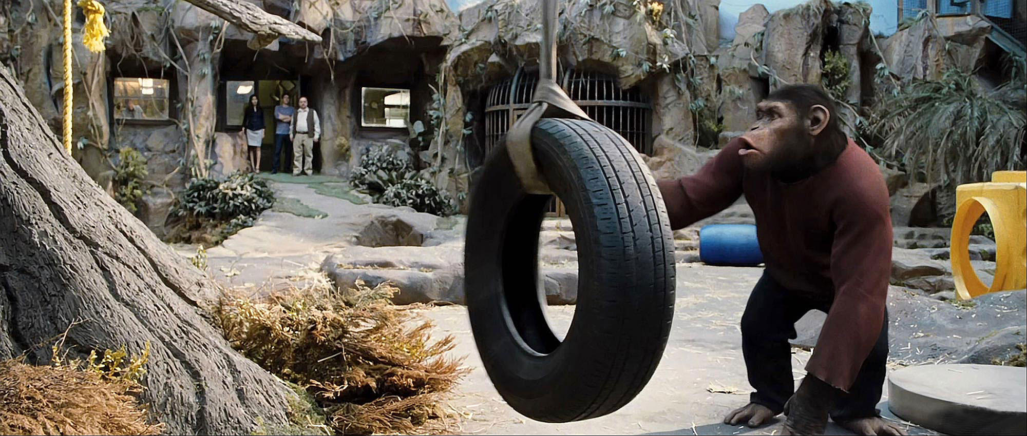 I think you’re being rather harsh towards the neighbor character, whose reactions struck me as, by and large, reasonable rather than psychotic. As Will’s underused vet girlfriend says, apes are dangerous animals and should not be kept as pets. One need only recall the story of the woman who lost both hands and her face to her friend’s pet chimp to feel that waving a baseball bat around when an out-of-control ape tries to “play” with your children is an entirely reasonable response. Similarly, though the neighbor shows a shocking lack of sympathy towards Charles when the latter wrecks his car, there’s no denying that he has the right to be angry (especially as Charles has been well for five years by that point). The fact that the neighbor doesn’t force Will to get rid of Ceasar (a wild animal whom it is illegal to keep as a pet) when he’s still young, or press charges against Will after Ceaser’s assault, is either a gaping plot hole or a sign that he’s a great deal more compassionate than you give him credit for.