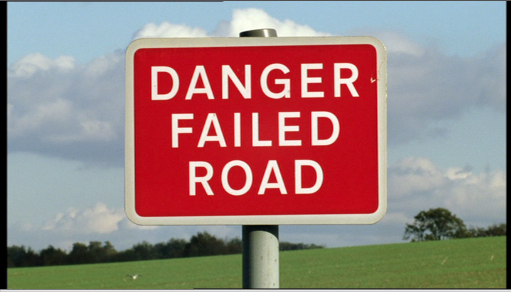Both London and Robinson in Space benefit from a distinctive visual style. Entirely made up of footage shot using a single unmoving camera, both films use the compositional techniques of tourist holiday photography as a means of achieving a state of naïve realism, as though both the images and the truths they yield had just been stumbled upon by accident. This accidental method is reflected in the dialectical nature of Keiller’s scripts. In both films, Robinson represents the romantic visionary who flies too close to the Sun and needs to be pulled back down to Earth by the supportive cynicism of the narrator. As though by accident, the films truths emerge from the collision of Robinson’s idealism with the narrator’s cynicism. Taken together, these two accidental forms of argumentation make for an intensely ironic cinematic experience: between the discarded phone cards with images of Hadrian’s wall or the Conservative party poster sitting beside a wasteland, Keiller makes his points through a haze of philosophical caveat and diversionary winks. In London and Robinson in Space, Keiller neither exhorts nor inspires, he lures you into agreement with a joke and a nudge.