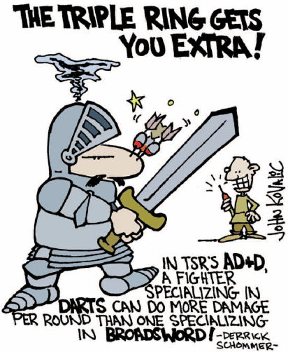 If the name and design principles underpinning AD&D2 make it sound cluttered to the point of complete inaccessibility, then you would be completely right. It was nearly 25 years before someone thought to take D&D back to first principles and one can only assume that this reluctance to mess with the rules was derived from an unspoken assumption that the audience for D&D was the same as it had always been. If you assume that the only people buying AD&D2 are the people who already own AD&D1 then it doesn’t really matter that rules changes mean additional sub-systems… it’s not as though anyone has to learn all the rules from scratch! Similarly, if you assume that the only people interested in playing D&D are the people already playing it then every rule change runs the risk of alienating the people who have been playing the same campaign for 20 years. Do these designers not realise how difficult it is to port a 75th level Paladin Demigod from one edition to another?