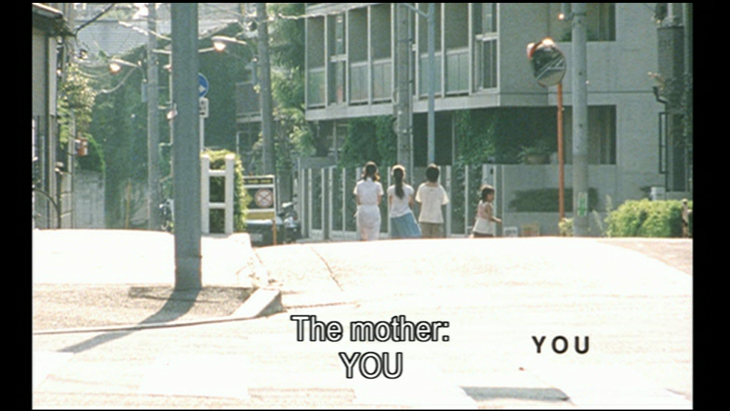 The tension between the personalities the mother wanted her children to have and the personalities the children need in order to survive comes to a boil when the water, power and gas are unceremoniously cut off. Realising that his family will not survive in the shape his mother had intended, Akira takes his siblings’ shoes out of the cupboard and invites them out into the world. Now they are free but they also have each other.