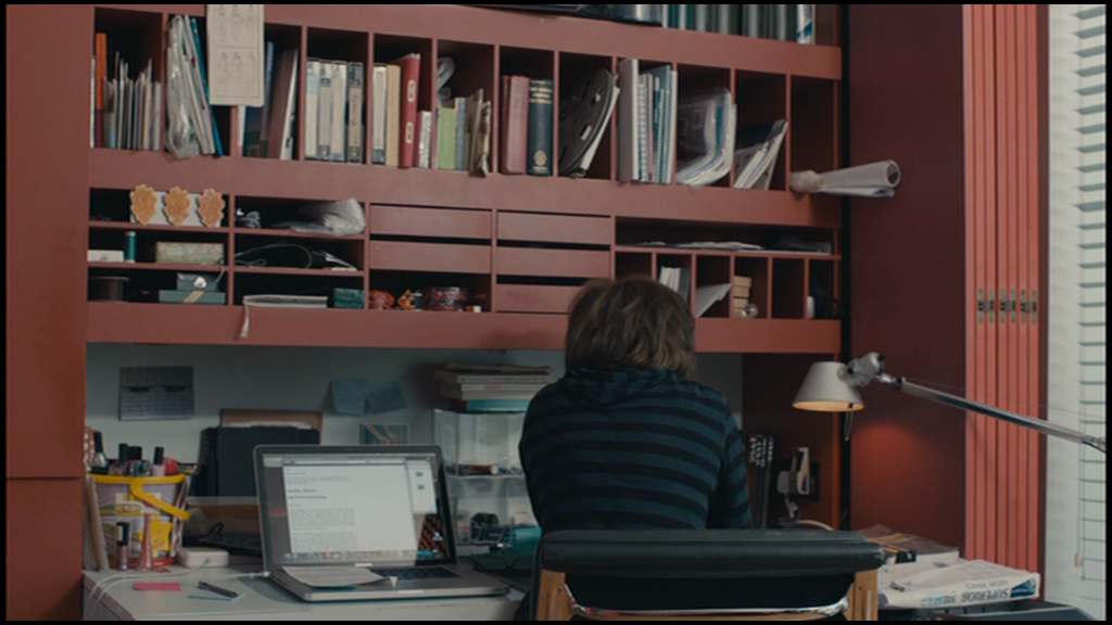 Using D as a focal point, Hogg assembles a three-way relationship between the shape of the house, the state of D’s latest art project and the health of H and D’s relationship. Every attempt to reduce the film’s thematic payload to one of these subjects is immediately undercut by a scene demonstrating how a simple relationship can also work in the opposite direction. For example, we see how working at home in separate offices gives the couple an excuse not to talk but we also see how D uses the house’s unique architecture to erect walls around spaces that could just as easily be open. Similarly, while Hogg suggests that H might be looking to sell the house as a means of getting rid of D, she also suggests that the desire to escape the past and move forward might be part of a plan to lure D out of her unresponsive little red box and out into a world that is considerably less scary than she would like to think. Hogg also sets up links between D’s stalled sexuality, her need to open the blinds in her office and bringing her current art project to conclusion in order to begin a public installation. This is a film with multiple points of thematic entry but also multiple points of exit; sex, art and architecture are the couple’s emotional currency and you cannot think or talk about any of them without also recognising the influence of the others.