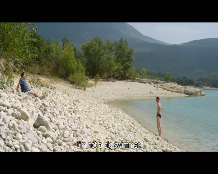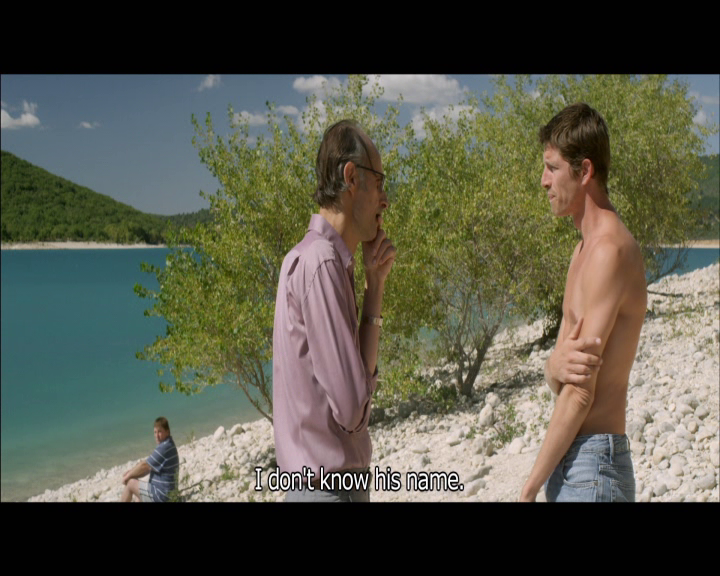 The lake itself is beautiful but the beach is astonishingly rocky. This means that whenever two characters want to hang out, they are forced to share a bath towel thereby ensuring that sexual tension and the dissolution of private space is built right into the setting. Throughout the film, various characters obsess about parts of the landscape, suggesting that certain forms of behaviour that are acceptable on one part of the beach are not acceptable on others. For example, there are frequent references to an (unseen) side of the lake where the straight people go and one of the characters chooses to sit in a particularly rocky bit as a way of signalling his lack of interest in company.