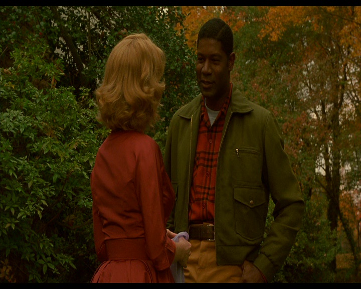 Far from Heaven is a textbook example of a character-driven film in that the entire plot flows from decisions made by the characters. However, as pleasing as this may be, the film’s true power lies in the willingness to explore the consequences of those actions. For example, what drives Frank to drink is neither self-disgust nor Cathy’s anger but fear of social consequence. Fear that, should his double-life become public knowledge, he will be subjected to forms of discrimination and oppression that nobody would even dare to acknowledge in public. Indeed, while Haynes makes suburban Connecticut look absolutely delightful, it is actually a place where the line between person and non-person is policed with ruthless brutality.